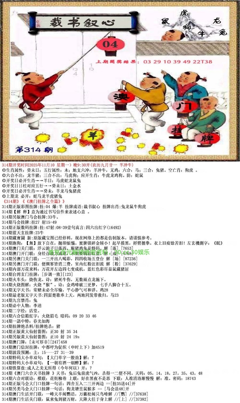 314期今期羊鸡牛出特,东土苗人尚有残开羊23